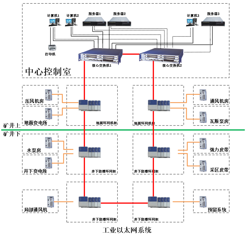 我公司在長(zhǎng)期的煤礦自動(dòng)化建設(shè)中,累了豐富的礦井工業(yè)以太網(wǎng)建設(shè)經(jīng)驗(yàn),對(duì)礦井工業(yè)以太網(wǎng)應(yīng)用情況有深刻體會(huì),能夠根據(jù)客戶的地理分布、現(xiàn)有基礎(chǔ)、帶寬需求、資金投入等實(shí)際情況進(jìn)行綜合分析,制定與客戶實(shí)際需求相匹配的工業(yè)以太網(wǎng)建設(shè)優(yōu)化方案。本系統(tǒng)具有遠(yuǎn)程維護(hù)功能,能夠通過互聯(lián)網(wǎng)和特制軟件遠(yuǎn)程診斷網(wǎng)絡(luò)設(shè)備的健康狀況,對(duì)有問題的設(shè)備給出預(yù)警提示,以方便技術(shù)人員及時(shí)維護(hù),確保信息的正常傳輸。