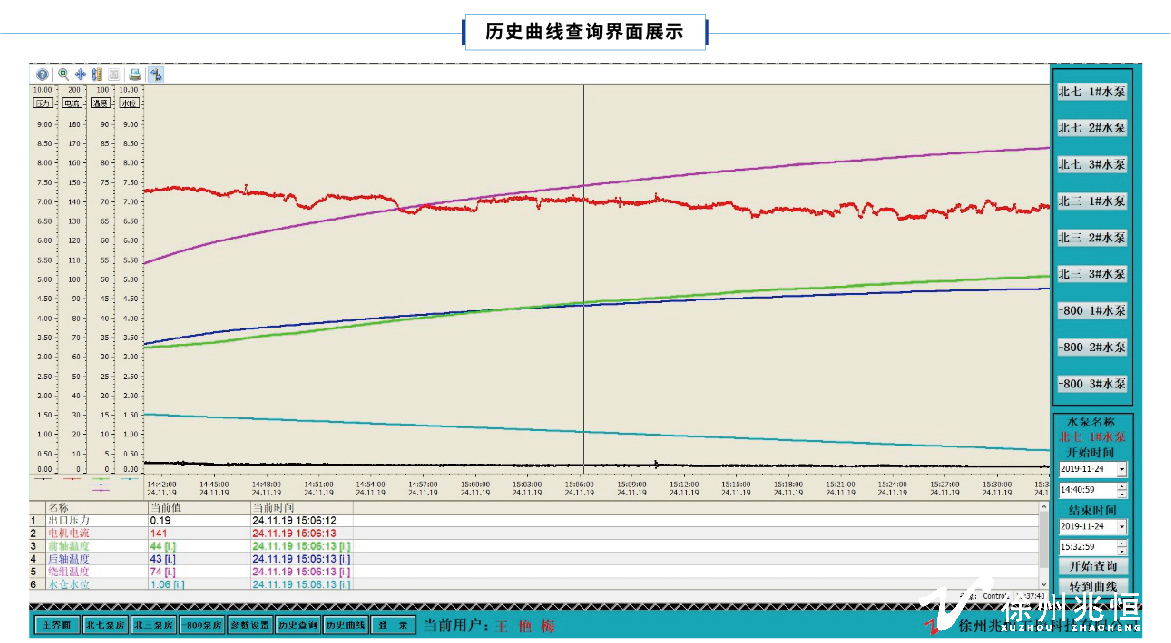(2)記錄和查詢(xún)電機(jī)電流、水倉(cāng)水位實(shí)時(shí)數(shù)據(jù)曲線,便于數(shù)據(jù)分析。