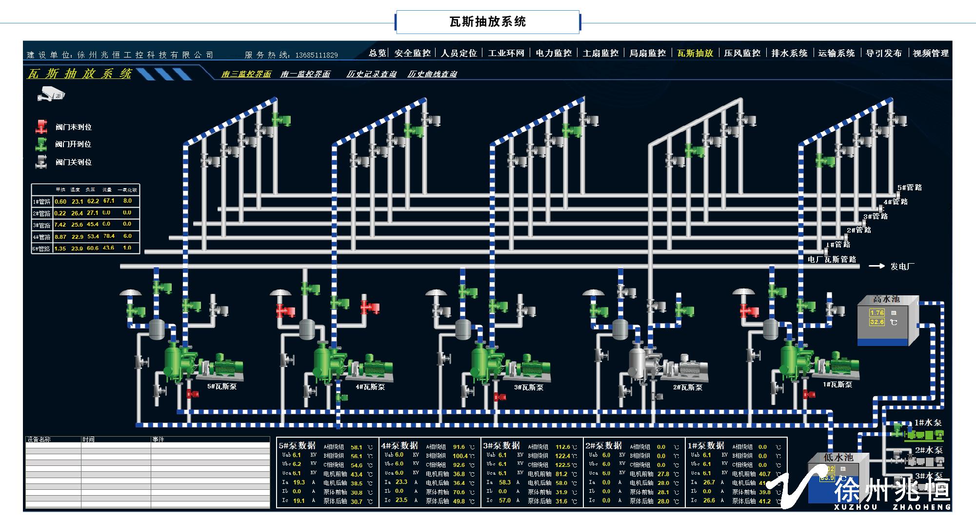瓦斯抽放泵監(jiān)控系統(tǒng)能實時監(jiān)控泵房抽放管道的負壓、溫度、濃度、流量;泵房中循環(huán)水池的水位、水溫;泵房的環(huán)境瓦斯?jié)舛?、抽放泵的運行狀態(tài)、電機電流等。